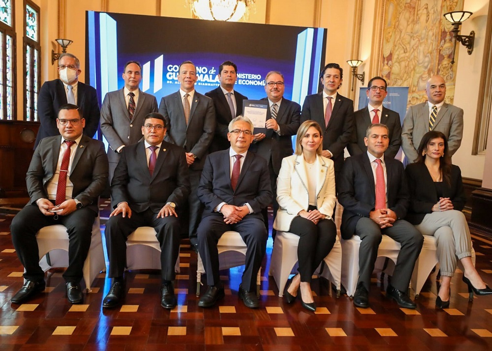 El ministro de Economía, Dr. Janio Rosales, junto a las autoridades y representantes de los ministerios de Finanzas, Salud, Ambiente, Agricultura; la Comisión Presidencial de Gobierno Abierto y Electrónico, Municipalidad de Guatemala, Contraloría General de Cuentas y la Fundación para el Desarrollo de Guatemala (FUNDESA); participaron en la firma del convenio de cooperación interinstitucional para el establecimiento de una mesa técnica de Certeza Jurídica, en el marco del Plan Guatemala No Se Detiene.