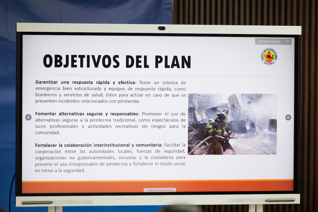 El Ministerio de Economía, a través de la Dirección de Atención y Asistencia al Consumidor (DIACO), informó sobre la puesta en marcha del Plan Belén, una estrategia interinstitucional en la que participan diversas entidades gubernamentales y de socorro, como los ministerios de Gobernación, Defensa, de Salud y Asistencia Social, Ambiente y Recursos Naturales, los cuerpos de Bomberos Voluntarios y Bomberos Municipales, la Policía Nacional Civil y la Coordinadora Nacional para la Reducción de Desastres (CONRED ). Este plan, con más de 20 años de trayectoria, tiene como objetivo principal proteger la seguridad de los guatemaltecos durante las celebraciones de fin de año y reducir los riesgos relacionados con el uso de productos pirotécnicos.