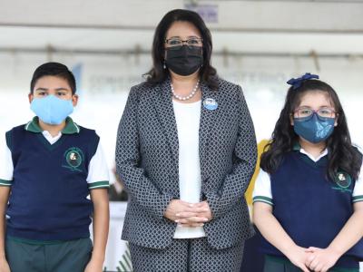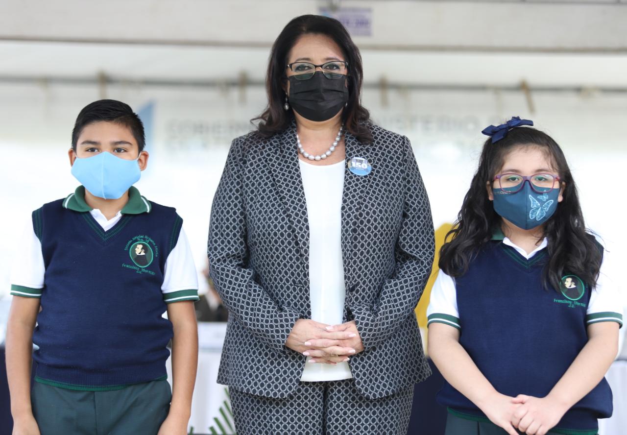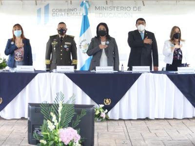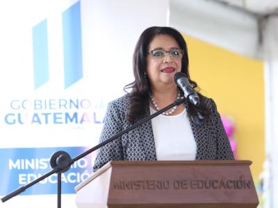 En su intervención la Ministra de Educación Claudia Ruíz destacó el esfuerzo y compromiso del Gobierno Central, los colaboradores del Ministerio de Educación, la Comunidad Educativa y aliados estratégicos para construir juntos los pilares de un nuevo paradigma educativo en beneficio de las nuevas generaciones de niñas y niños guatemaltecos.