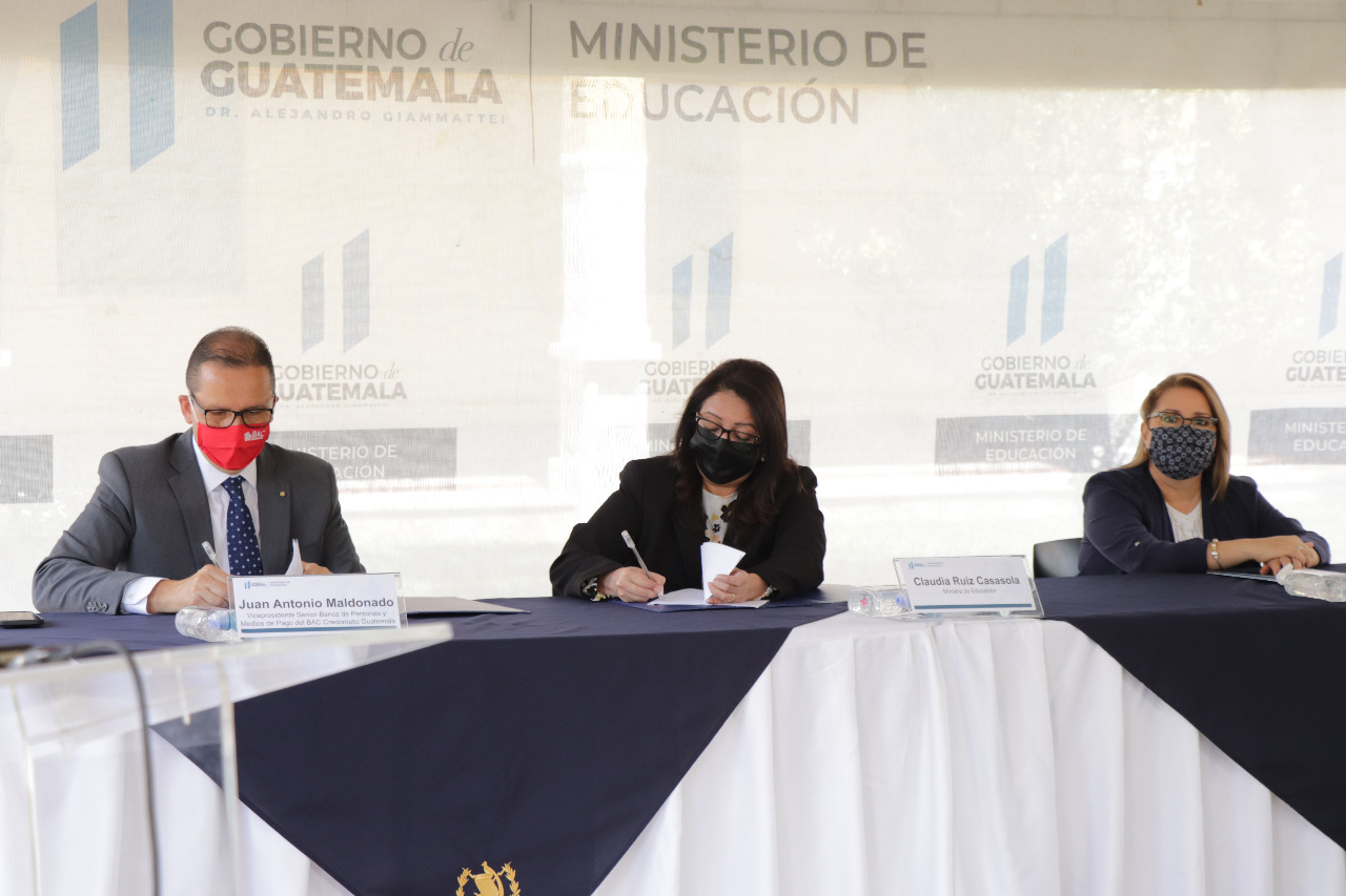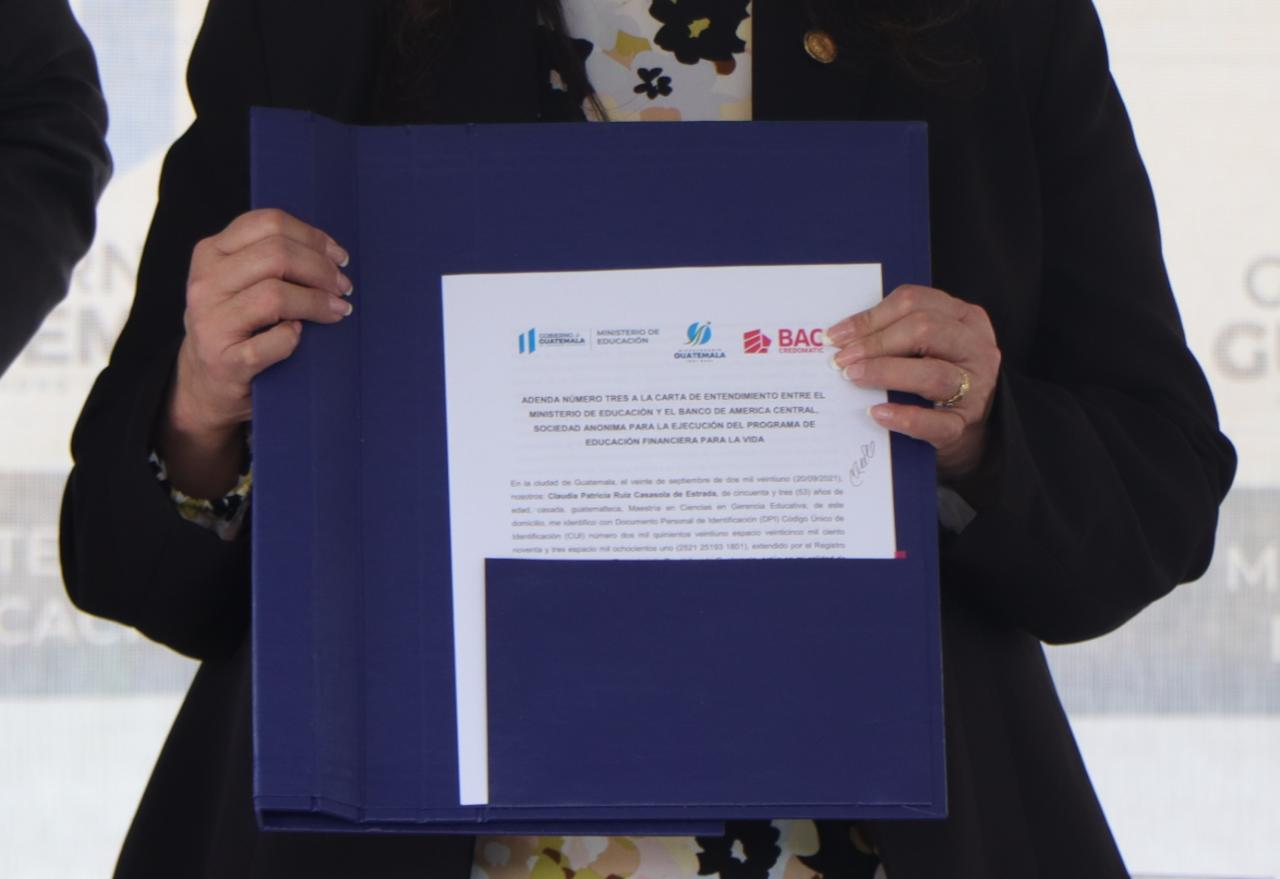 La Ministra de Educación, Claudia Ruíz de Estrada suscribe con el Presidente del Consejo de Administración y representante Legal del Banco de América Central S.A, -BAC- la Adenda Número Tres a la Carta de Entendimiento para la implementación del Programa de Educación Financiera para la Vida en Institutos Nacionales de Educación Básica –INEB-, a nivel nacional.