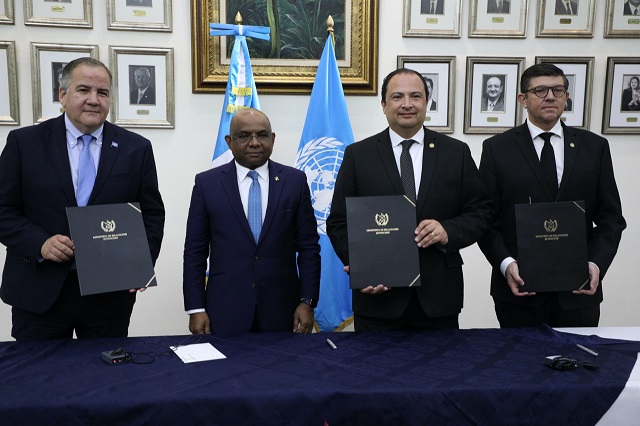 La suscripción del Acuerdo estuvo a cargo del ministro de Relaciones Exteriores, Mario Búcaro; del coordinador residente del Sistema de Naciones Unidas en Guatemala, Miguel Barreto, y del director general del Instituto Guatemalteco de Migración, Estuardo Rodríguez. Como testigos de honor, el representante del Fondo de las Naciones Unidas para la Infancia (UNICEF), Carlos Carrera; el jefe de Misión para Guatemala y Honduras de la Organización Internacional para las Migraciones (OIM), Jorge Peraza, y la representante adjunta del Alto Comisionado de las Naciones para los Refugiados (ACNUR), Andrea Leoro Toscano.