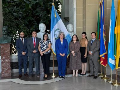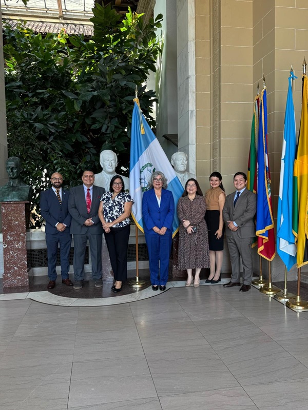 Washington D. C., Estados Unidos, 5 de septiembre de 2025. Una delegación público-privada integrada por funcionarios del Ministerio de Relaciones Exteriores (MINEX), junto a la Cámara del Agro (CAMAGRO), la Asociación de la Industria del Vestuario y Textiles (VESTEX) y la Asociación de Productores Independientes de Banano (APIB), efectuó una visita de cortesía a la Embajadora Claudia Escobar, Representante Permanente de Guatemala ante la Organización de los Estados Americanos (OEA).