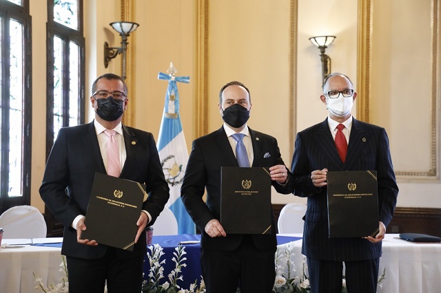 Guatemala, 31 de enero de 2022. El gobierno del presidente Alejandro Giammattei unifica los esfuerzos interinstitucionales para visibilizar, promocionar y posicionar a Guatemala en el extranjero por medio de la Diplomacia Cultural tras la firma, este lunes, de un convenio de cooperación entre Ministerio de Relaciones Exteriores (Minex), el Ministerio de Cultura y Deportes (MCD) y el Instituto Guatemalteco de Turismo (Inguat).
