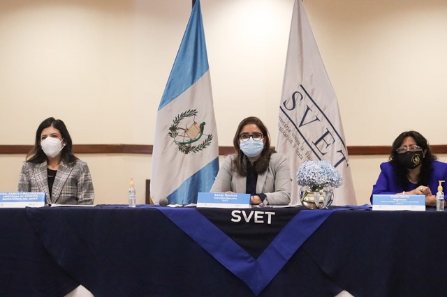 La reunión estuvo presidida por Sandy Recinos, secretaria ejecutiva de la SVET; Delia Dávila, magistrada de la Corte Suprema de Justicia; Fabiola Mazariegos, directora de Asuntos Migratorios de la Cancillería; y Honeyda Morales, especialista senior del Programa Regional sobre Migración.