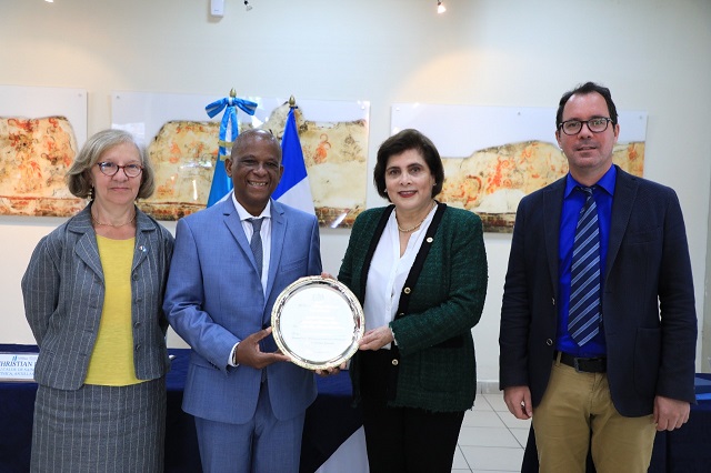 Guatemala, 6 de diciembre de 2021. Autoridades del Ministerio de Relaciones Exteriores (Minex), en nombre del Gobierno de Guatemala, entregaron este lunes un reconocimiento al alcalde de Saint-Pierre, Martinica, Christian Rapha, por su labor de promover el acercamiento e intercambio cultural con la Antigua Guatemala, ciudad hermana de esa localidad.