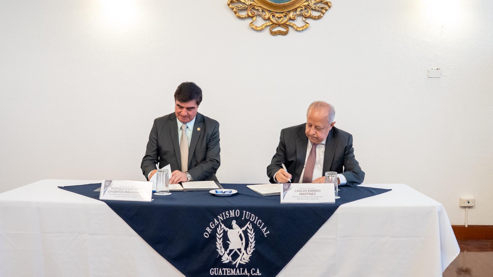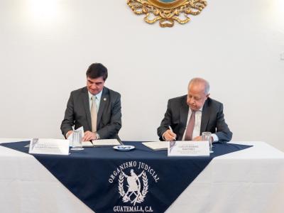 El convenio fue oficializado con la firma del Ministro de Relaciones Exteriores, Embajador Carlos Ramiro Martínez Alvarado, y el Presidente de la Corte Suprema de Justicia y del OJ, Magistrado Teódulo Ildefonso Cifuentes Maldonado.