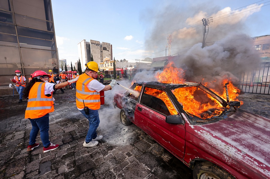 Durante la actividad, los brigadistas desarrollaron un escenario de conato de incendio, realizado en la parte posterior en la plazoleta poniente del edificio de Finanzas Públicas, donde se instaló un vehículo chatarra con un tonel que simuló fuego real, permitiendo la práctica del uso de extintores tipo A, B y C con polvo químico y mangueras contra incendios. Esta dinámica permitió reforzar los procedimientos de seguridad y la efectividad de los protocolos de respuesta.