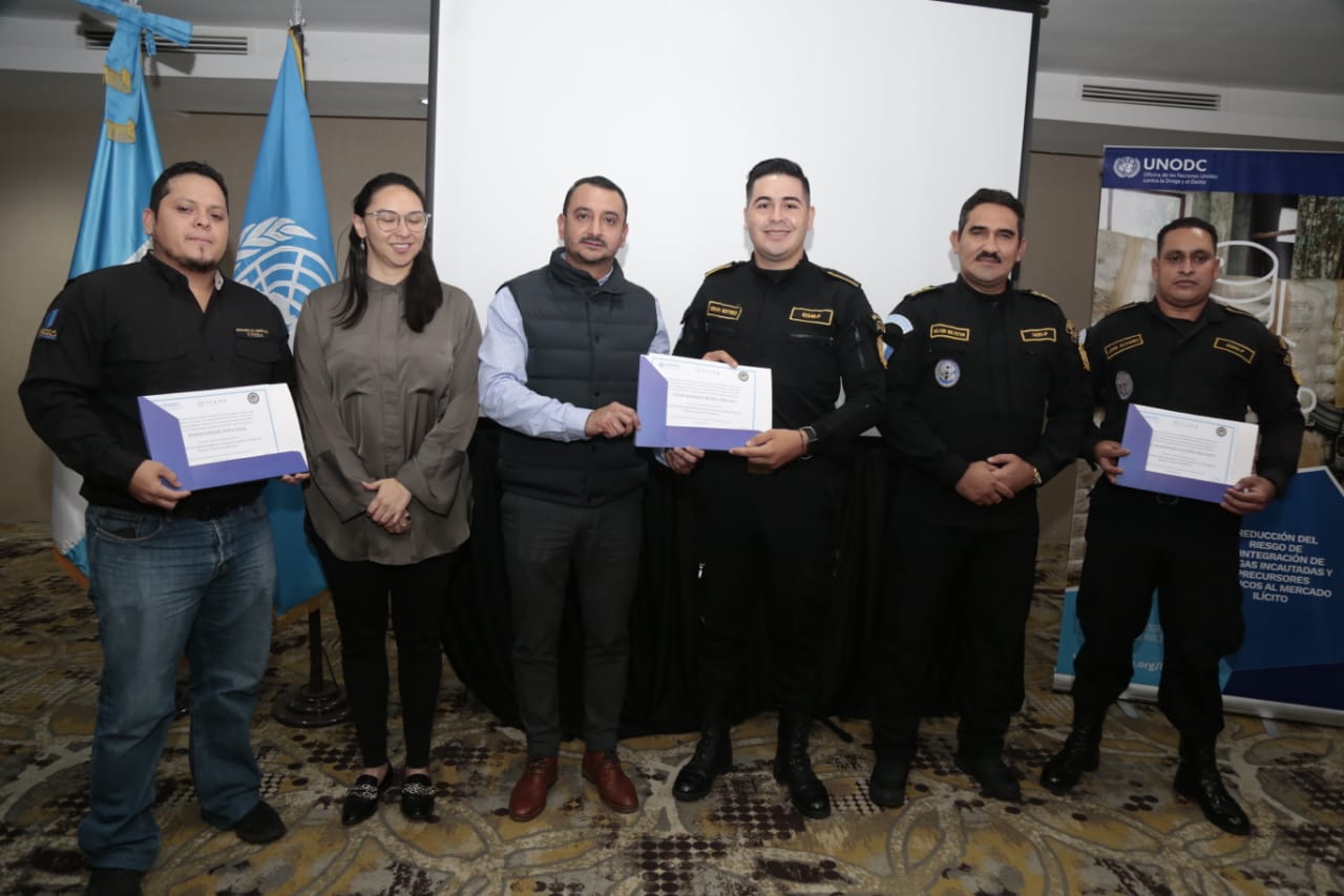Durante el evento, las autoridades hicieron entrega de diplomas al personal participante de esta capacitación, la cual contó con el apoyo de la Coordinadora Regional del Programa para Manejo Seguro y Eliminación de Drogas Incautadas y Precursores Químicos (STAND) y la Sección de Asuntos Antinarcóticos y Aplicación de la Ley (INL) de la embajada de Estados Unidos de América en Guatemala.