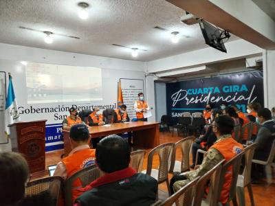 Por medio de las delegaciones departamentales se trabaja en coordinación con los Centros de Operaciones de Emergencia, integrados por la Coordinadora Nacional para la Reducción de Desastres (Conred), cuerpos de socorro, Policía Nacional Civil, Ejército de Guatemala y otras instituciones.