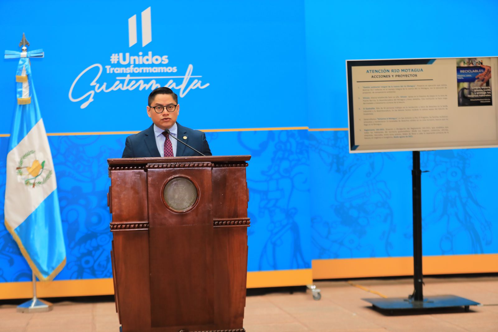 Durante su intervención, el viceministro habló sobre la atención al río Motagua, con proyectos como “Gestión ambiental integral de la cuenca del río Motagua”, que se encuentra en ejecución y que estima destinar US$3.7 millones en el manejo integral de la cuenca del río Motagua, para su saneamiento.