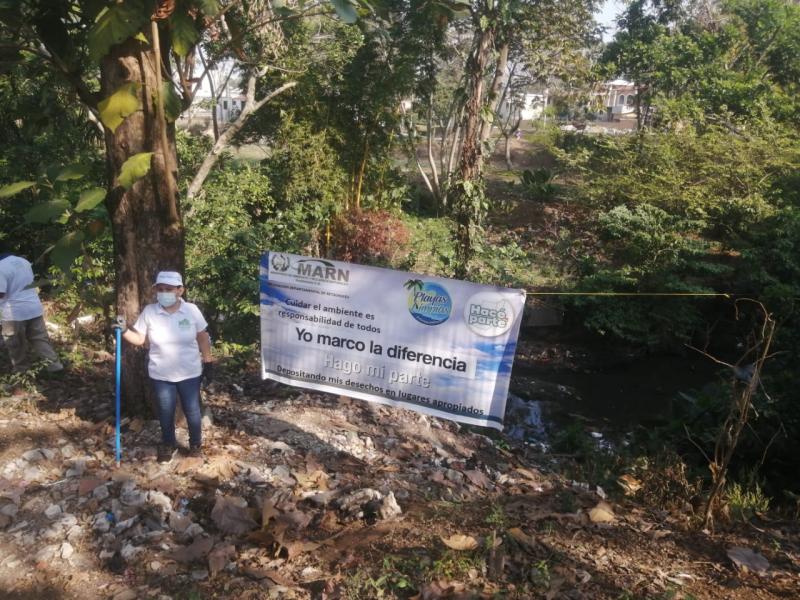 En el río Tineco, aldea Armenia Ortiz, San Martín Zapotitlán, la delegación del MARN coordinó una jornada de limpieza con autoridades municipales, UGAM, catedráticos y alumnos del Instituto Nacional de Educación Diversificado.