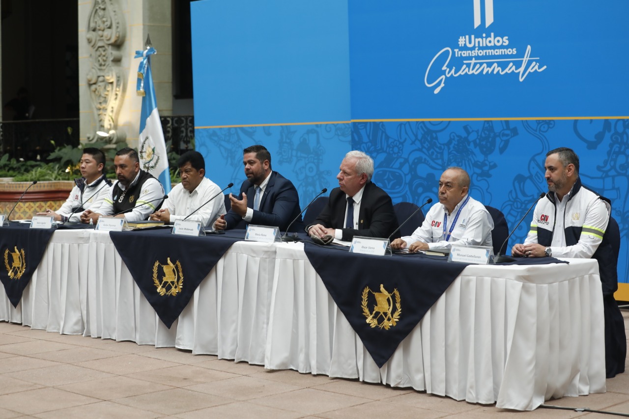 El ministro de Comunicaciones, Javier Maldonado, junto con sus Viceministros de Infraestructura, Carlos Figueroa; de Edificios Estatales y Obra Pública, Mario Flores; así como sus directores de Covial, Mario Aguilar; de la Dirección General de Caminos, Gabriel Jo; de la Unidad de Construcción de Edificios del Estado (UCEE), Oscar Sierra; y del Fondo Social de Solidaridad, Manuel Castellanos, ofrecieron una conferencia de prensa que se desarrolló en el Patio de La Vida del Palacio Nacional de la Cultura.