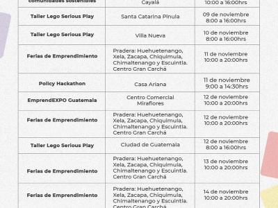 La agenda de actividades empieza el próximo 5 de noviembre, con el evento Construyendo Comunidades Sostenibles, que se llevará a cabo en el complejo comercial de Ciudad Cayalá, Bulevar Rafael Landívar, zona 16.