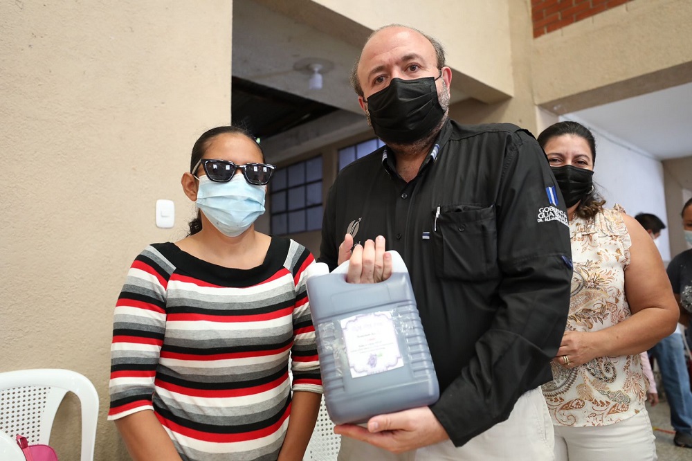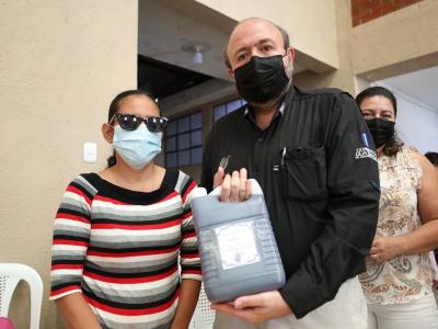 Como madre soltera no vidente, ella es un ejemplo del emprendimiento femenino del municipio pues alrededor de seis años atrás aprendió a elaborar desinfectantes, jabón líquido para manos y gel antibacterial con el apoyo de programas municipales.