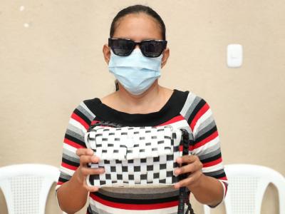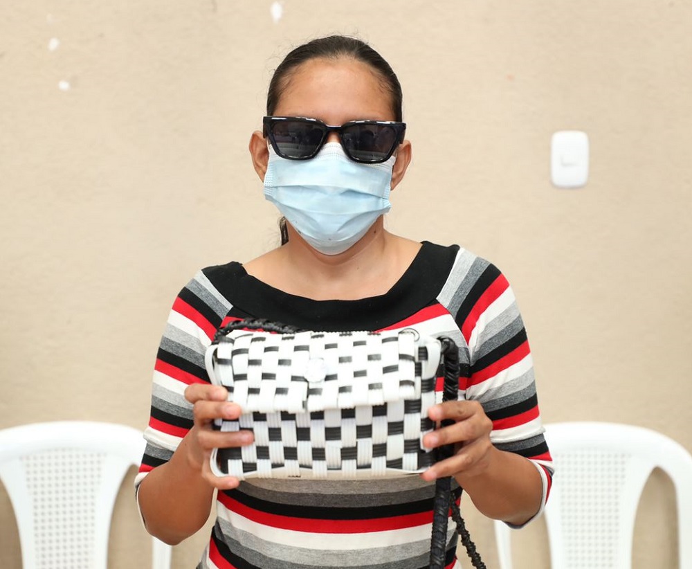Con esa preocupación hace unos seis meses la empresaria relata que pese a su discapacidad visual, aprendió a elaborar bolsas y carteras a partir de cinta plástica de la que se emplea para fabricar canastos. Aunque trabaja por pedido, ya vende en la comunidad y hasta ha enviado algunas unidades a Estados Unidos.
