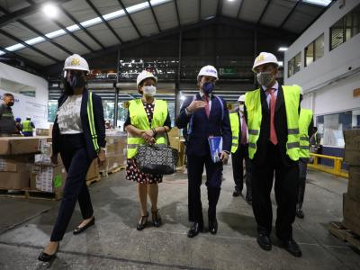 En el marco del Plan de Gobierno del presidente de la República, el Dr. Alejandro Giammattei y como parte de las acciones que desde el Ministerio de Economía se trabajan en beneficio de la economía del país, la Viceministra de Integración y Comercio Exterior, María Luisa Flores, participó en representación del Ministro de Economía, Dr. Janio Rosales, en la visita que una Comisión de Alto Nivel del Banco Mundial (BM) realizó el martes último a las instalaciones de Combex-Im.