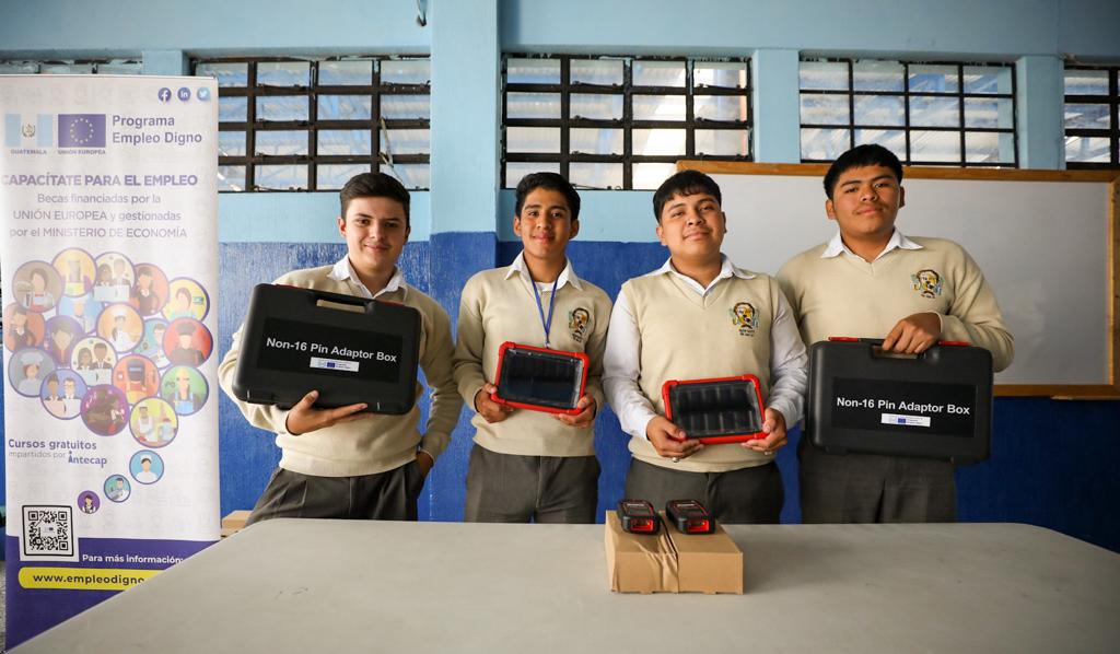 La donación, que en conjunto suma Q477 mil 700, forma parte del Programa de Apoyo al Empleo Digno en Guatemala, financiado con recursos de la Unión Europea y ejecutado por el gobierno de Guatemala a través del Ministerio de Economía, con el apoyo del Ministerio de Educación.