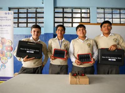 En el caso del Instituto Nacional de Educación Diversificada Ulew Kotz'i'j, de San Juan Sacatepéquez, la donación de equipo consistió en dos escáneres automotrices para diagnóstico, dos elevadores de autos de dos columnas, dos compresores silenciosos y una pluma para motor, con un valor conjunto de 77 mil quetzales.