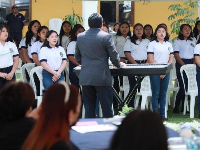 En la actividad de Aniversario también estuvo presente el Coro del Instituto Nacional Experimental de Educación Básica con orientación ocupacional de San Pablo Jocopilas, Suchitepéquez, quienes interpretaron el Himno Nacional de Guatemala, el Himno de PEMEM; así como las melodías El amor de un hombre maya y Guatemala de la eterna primavera, ambas compuestas por el maestro Eri Otoniel Orozco, quien dirige el Coro.