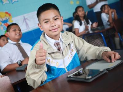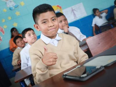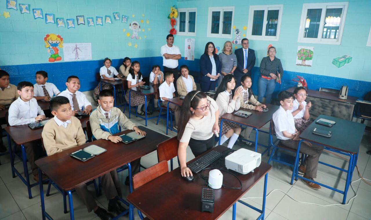 La titular de la cartera educativa destacó que la entrega de Tecnología en el Aula en la Escuela Oficial Urbana Mixta No.114 Doroteo Guamuch se realiza con el apoyo de Pencils of Promise y la alianza estratégica con TOMi Digital.