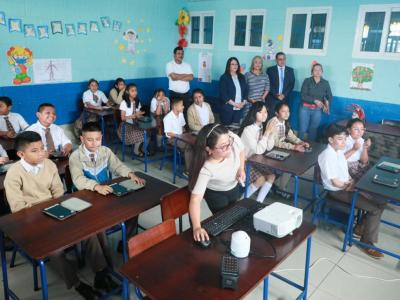 La Ministra de Educación, Claudia Ruíz de Estrada, hizo entrega en la Escuela Oficial Urbana Mixta No.114 Doroteo Guamuch Flores, de un kit de Tecnología en el Aula que beneficiará a 600 estudiantes y 20 docentes de dicho centro educativo.