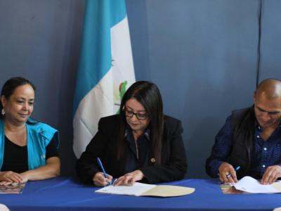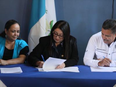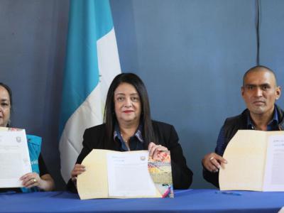 En la firma de los convenios estuvo presente Ileana Cofiño, Especialista de Educación de Unicef Guatemala; Leonel Chacón, Alcalde de Cobán; Winter Coc, Alcalde de San Pedro Carchá; la Vice ministra técnica de educación Edna Portales, así como representantes de la comunidad educativa.
