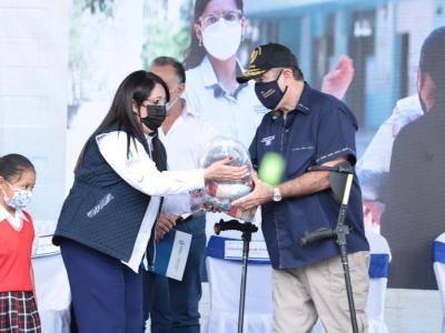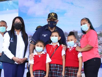 El Presidente Alejandro Giammattei junto a la Ministra de Educación, Claudia Ruíz de Estrada, llevaron a cabo la quinta entrega del Programa de Alimentación Escolar en la Escuela Oficial Urbana de Niñas “Berta Judith Franco Bonilla”, Barrio San Francisco Jalapa, con la participación de maestros, estudiantes, representantes de la Organización de Padres de Familia -OPF- y miembros de la comunidad educativa.