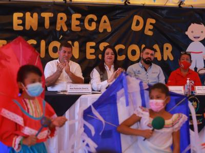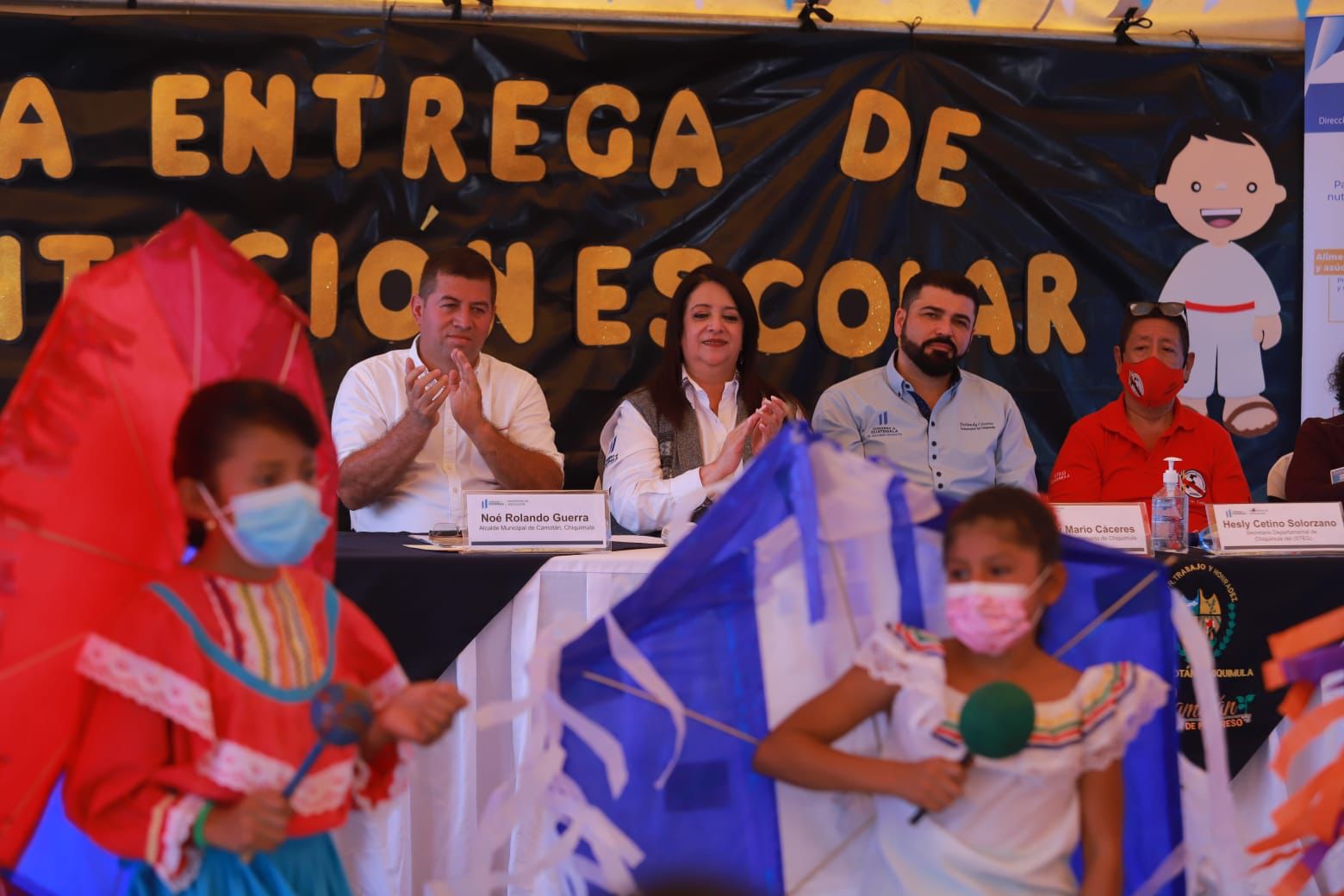 Durante la entrega también estuvo presente la Viceministra de Educación Bilingüe e Intercultural Carmelina Espantzay, el Gobernador Ferlandy Cáceres, el Alcalde Noé Guerra, representantes de la dirigencia magisterial y miembros de la comunidad educativa