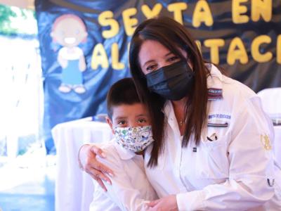 La Ministra de Educación, Claudia Ruíz de Estrada, realizó la sexta entrega del Programa de Alimentación Escolar en la Escuela Oficial Rural Mixta, Aldea El Brasilar, Camotán, del departamento de Chiquimula, con la participación de maestros, alumnos, representantes de la Organización de Padres de Familia-OPF- y miembros de la comunidad educativa.