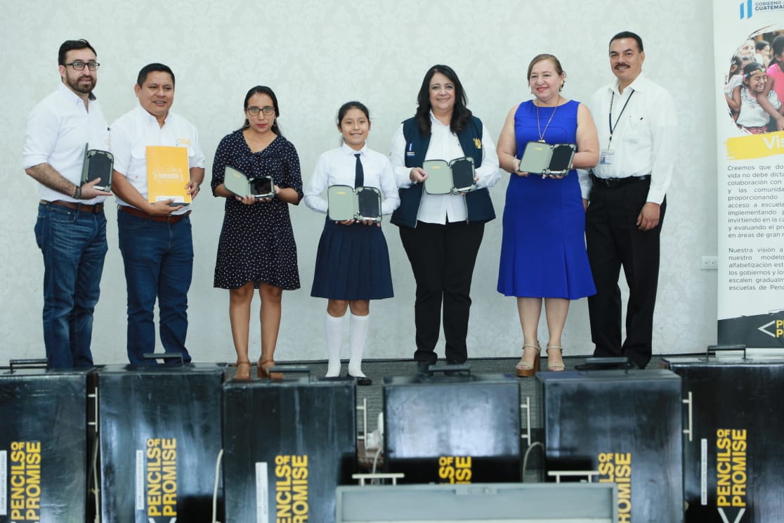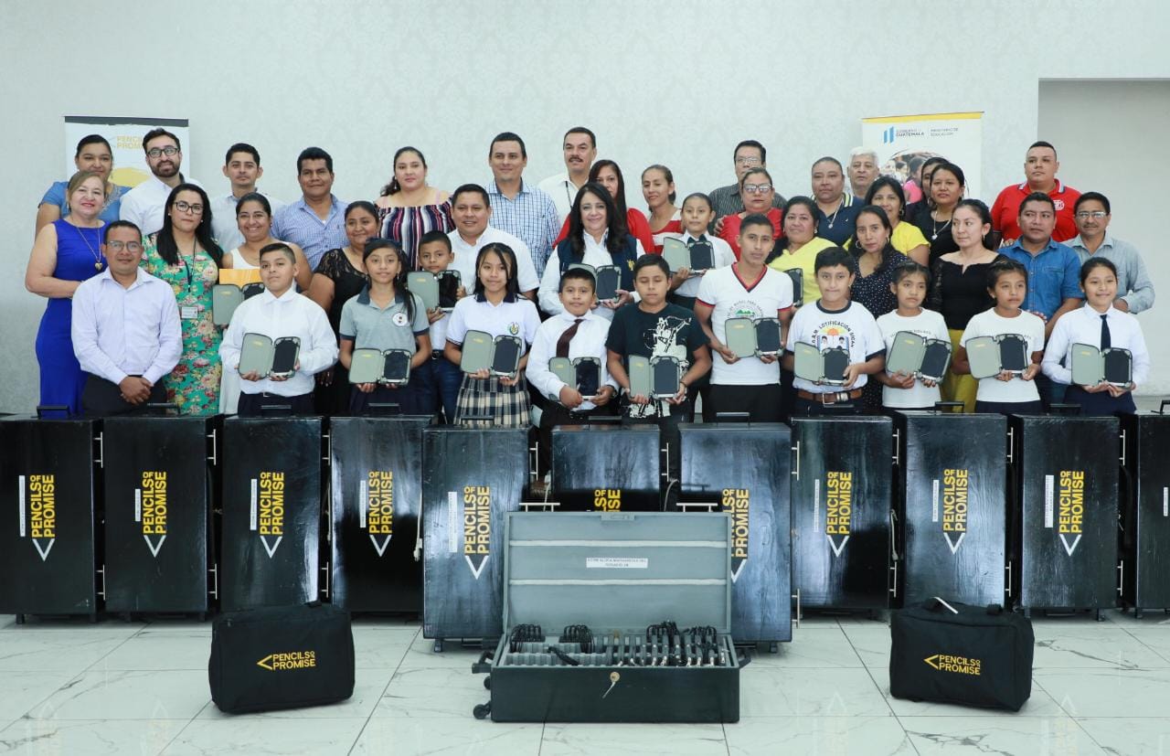 En Suchitepéquez, la Ministra de Educación, Claudia Ruíz de Estrada junto a Jorge Caal, Director Nacional de Pencils Of Promise, entregaron 927 Tabletas distribuidas en 18 centros educativos de los municipios de Cuyotenango, Mazatenango, San Antonio, San José La Máquina, San Lorenzo y Santo Domingo.