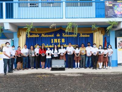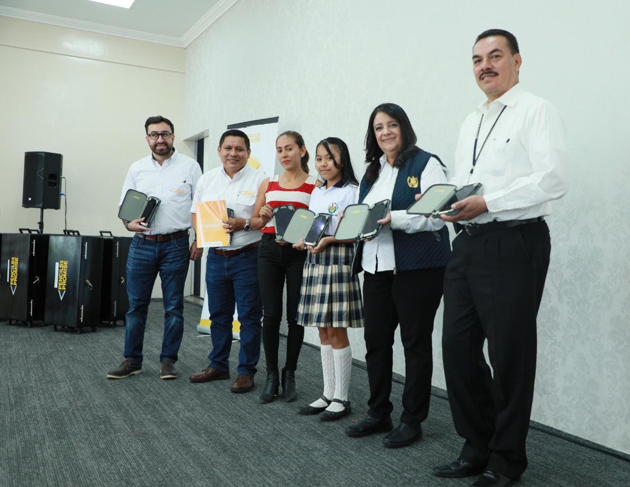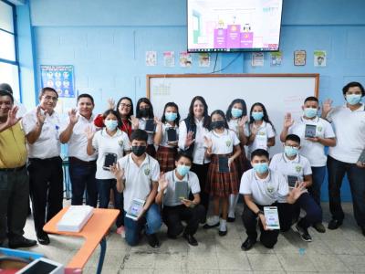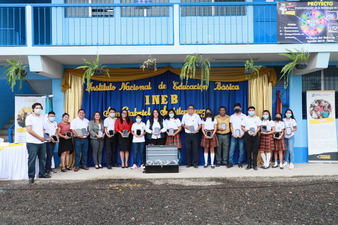 Al finalizar la gira de trabajo en Suchitepéquez, la Ministra de Educación y representantes de Pencils Of Promise asistieron al Instituto Nacional de Educación Básica -INEB-, en San Gabriel Suchitepéquez, para la entrega de donación de tabletas; así como de un dispositivo generador de contenidos donado por la empresa TOMi Digital.