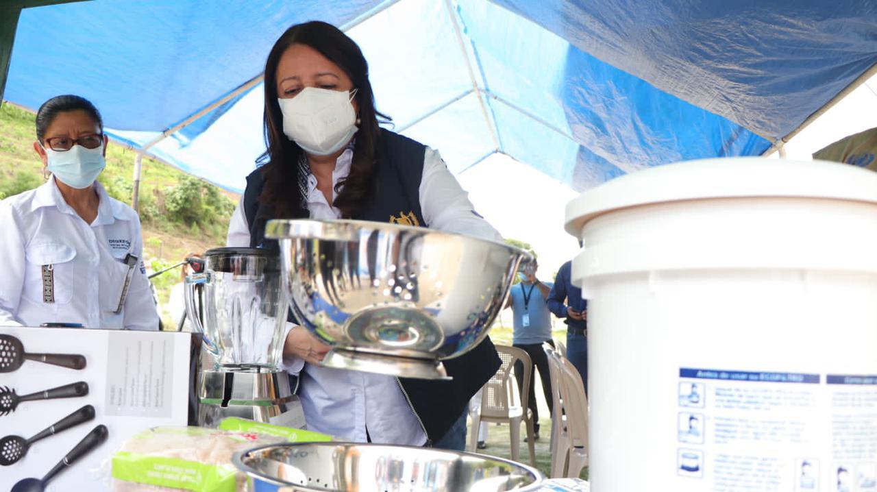 En seguimiento a la donación, la Ministra de Educación, Claudia Ruíz de Estrada junto a Irene del Río, representante Oficial del Programa Mundial de Alimentos (PMA) entregaron de manera simbólica el equipo y utensilios de cocina a la Organización de Padres de Familia de la Escuela Oficial Rural Mixta, Cantón Ojo de Agua, municipio de Palencia del departamento de Guatemala.