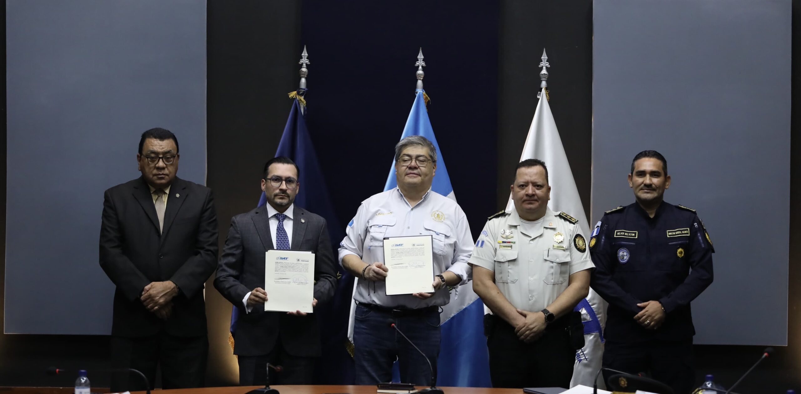 Como parte del apoyo interinstitucional, el día de hoy se realizó en el salón mayor del Ministerio de Gobernación, la firma del convenio de cooperación con la Superintendencia de Administración Tributaria (SAT), mismo que permitirá la coordinación ente ambas instituciones para la reducción de la defraudación y el contrabando aduanero entre otros ilícitos.