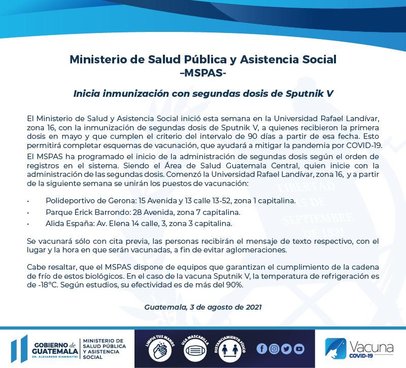 Ministerio de Salud Pública y Asistencia Social informa: