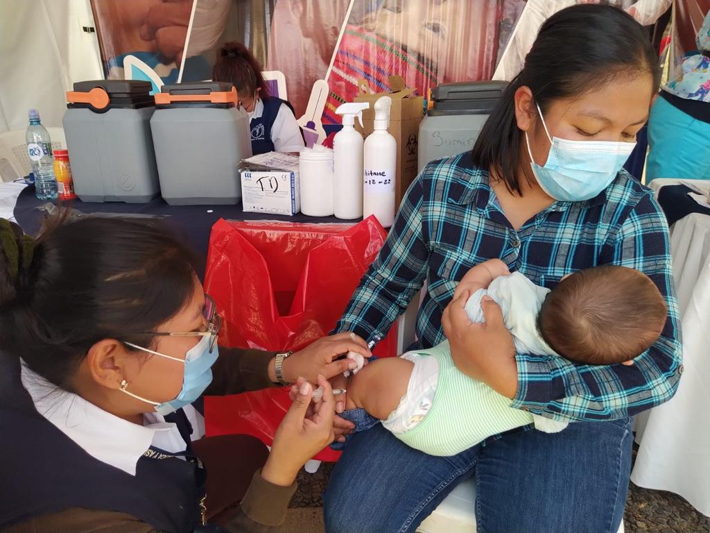 Isaías de 1 año de edad, fue el primer niño pesado, tallado y vacunado contra el neumococo, en la jornada integral de vacunación que se realizó en la Plaza Cristóbal Colón, en la Avenida las Américas, de 10:00 a 14:00 horas, en el marco del 120 aniversario de la Organización Panamericana de la Salud/Organización Mundial de la Salud (OPS/OMS).