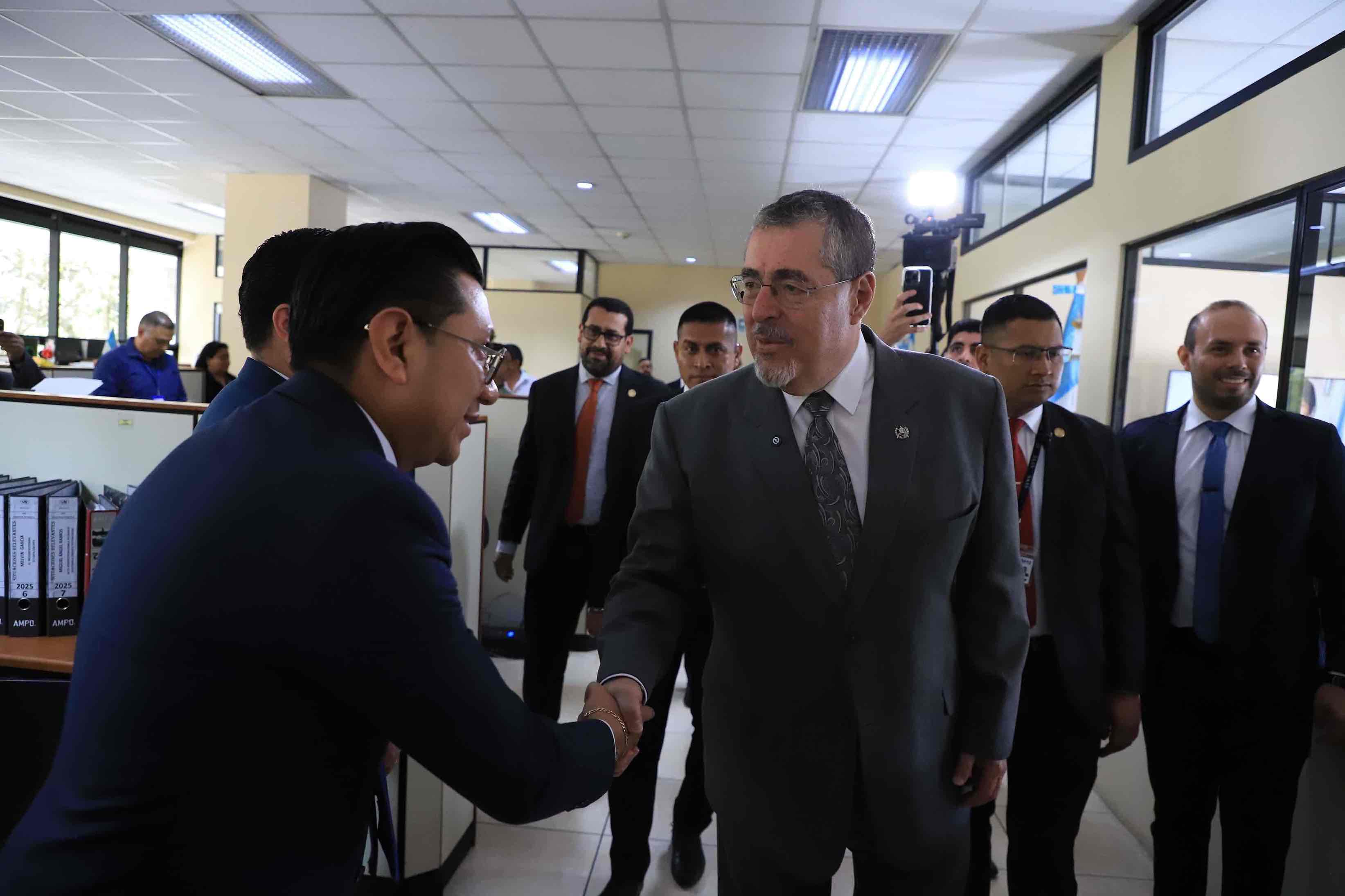 Luego del informe que le presentó la ministra Anabella Giracca, el presidente Bernardo Arévalo dijo que estaba satisfecho con el compromiso del equipo del Ministerio de Educación y por el trabajo que está realizando en la institución.