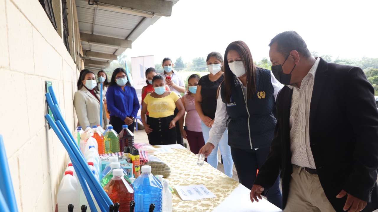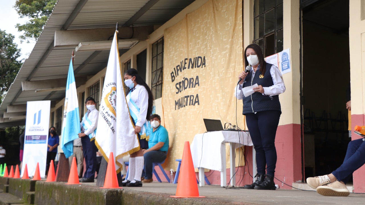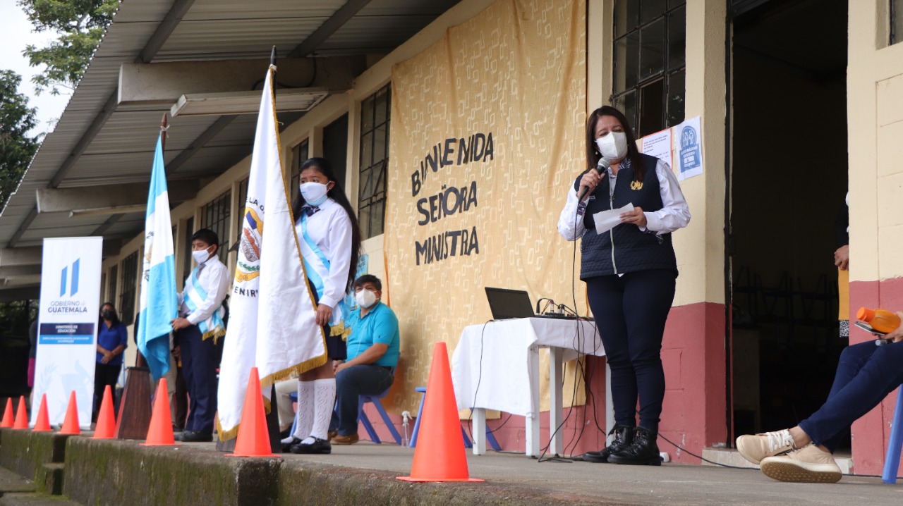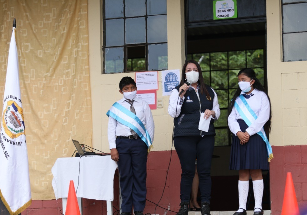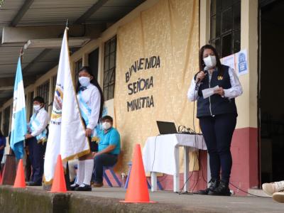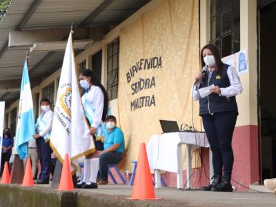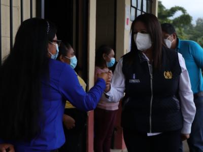 Ministra Claudia Ruíz monitorea entrega de insumos de bioseguridad en dos escuelas de Sacatepéquez