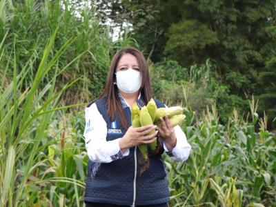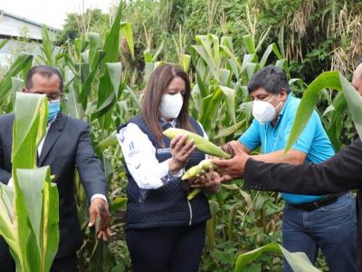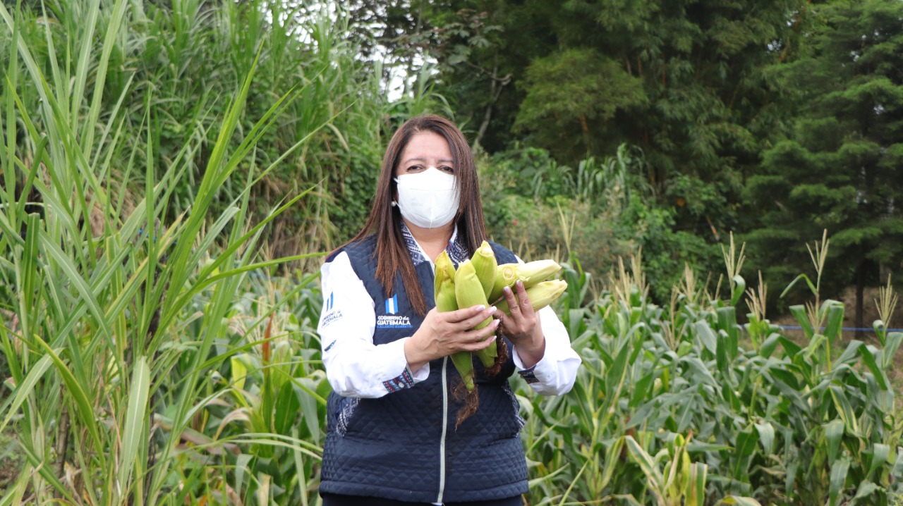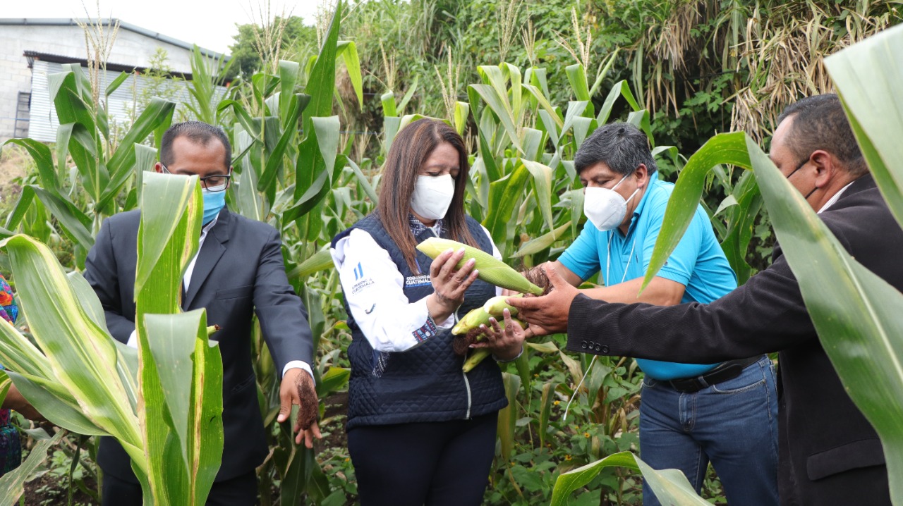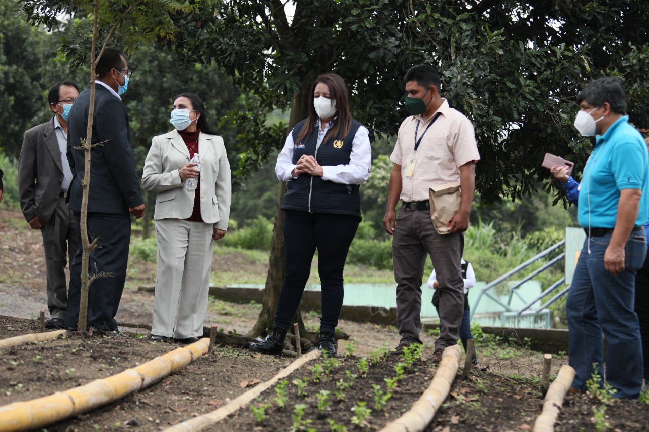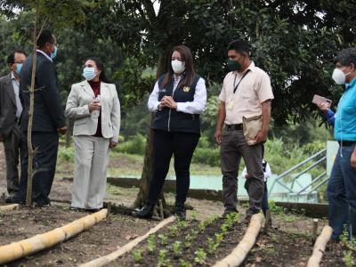 En aldea El Porvenir, Alotenango, la titular de la cartera educativa también visitó los huertos escolares y pedagógicos implementados por miembros de la OPF y docentes del centro educativo.