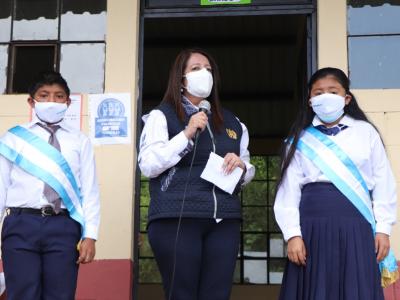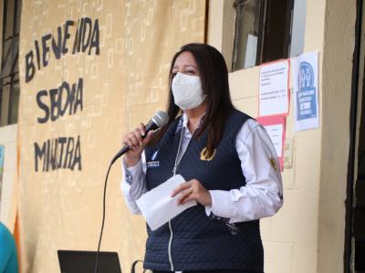 La Ministra Claudia Ruíz valoró el esfuerzo de los miembros de las Organizaciones de Padres de Familia y docentes para la coordinación de la entrega de los Programas de Apoyo como la Alimentación Escolar, Gratuidad de la Educación, Valija Didáctica, Útiles Escolares y Remozamiento.
