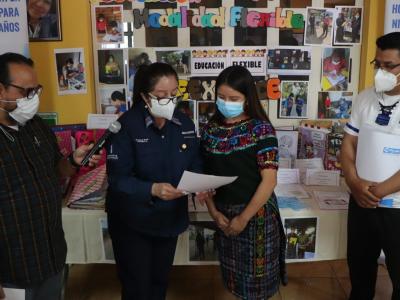 La ministra también sostuvo una reunión con Jonh Lundine del Plan Internacional para abordar temas becas escolares que fueron entregadas a 1,400 niños, 23,500 kits de aprendizaje y bioseguridad, además de la impresión y distribución de 224,695 módulos de aprendizaje para los departamentos de alta Verapaz, Jalapa, Quiché, Chiquimula y Zacapa.