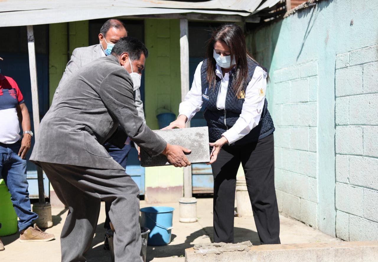En Patzicía, la Ministra de Educación monitoreo el avance del remozamiento que se realiza en Escuela Oficial Rural Mixta El Camán, el cual consiste en cinco salones de clase y una bodega en beneficio de 470 estudiantes de preprimaria y primaria del centro educativo.