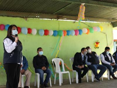 En Patzún, Chimaltenango, la Ministra de Educación reafirmó el compromiso del Ministerio de Educación (MINEDUC) en coordinar esfuerzos para la recuperación de la infraestructura de centros educativos, por lo que indicó que a la fecha se han intervenido 127 establecimientos en dicho departamento, priorizando los proyectos de agua y saneamiento que brinden las condiciones adecuadas para el ciclo escolar 2022.