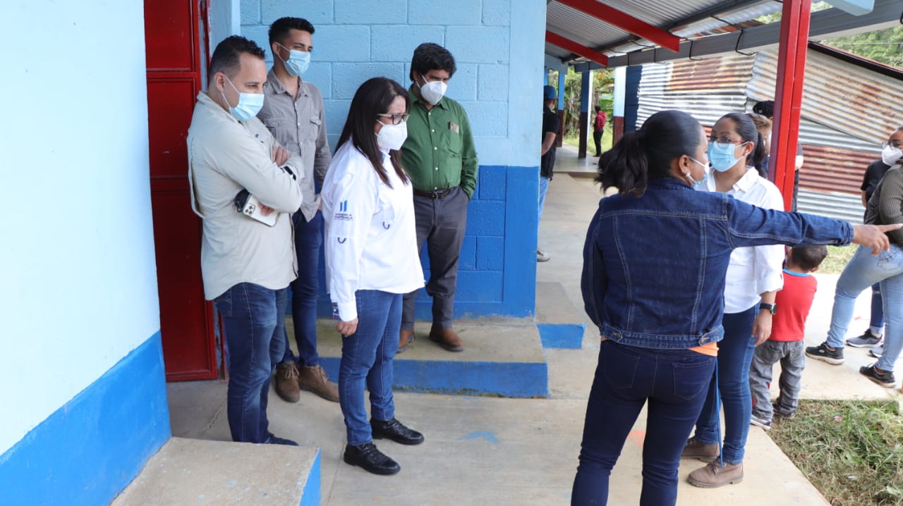 La Ministra Claudia Ruíz junto al Diputado Carlos Calderón, Presidente de la Comisión de Educación, Ciencia y Tecnología y equipo técnico del Ministerio de Educación (MINEDUC), monitorearon tres centros educativos que recientemente fueron remozados en San Jerónimo, Baja Verapaz.