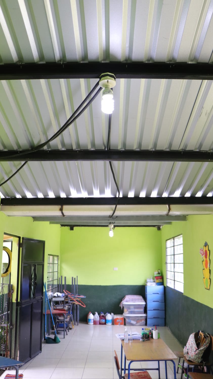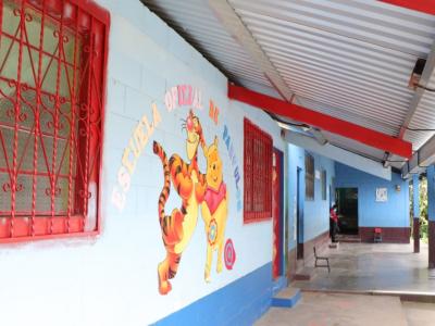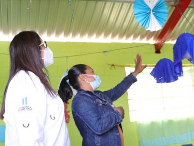 La Ministra Claudia Ruíz, también llegó a la Escuela Oficial de Párvulos, aldea Barrio Arriba, para monitorear el remozamiento del centro educativo, que consistió en cambio de techos, mejoramiento de puertas, pintura y servicios sanitarios; así como del sistema eléctrico.