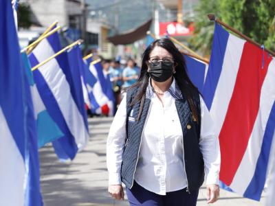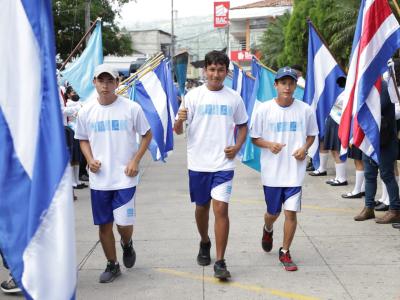 En el marco de las Fiestas Patrias, en su 201 Aniversario, la Ministra de Educación, Claudia Ruíz de Estrada, entregó la Antorcha Centroamericana por la Paz y la Libertad al Ministro de Educación de El Salvador, Mauricio Pineda, en el puente El Jobo, área fronteriza entre ambos países.
