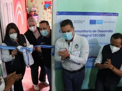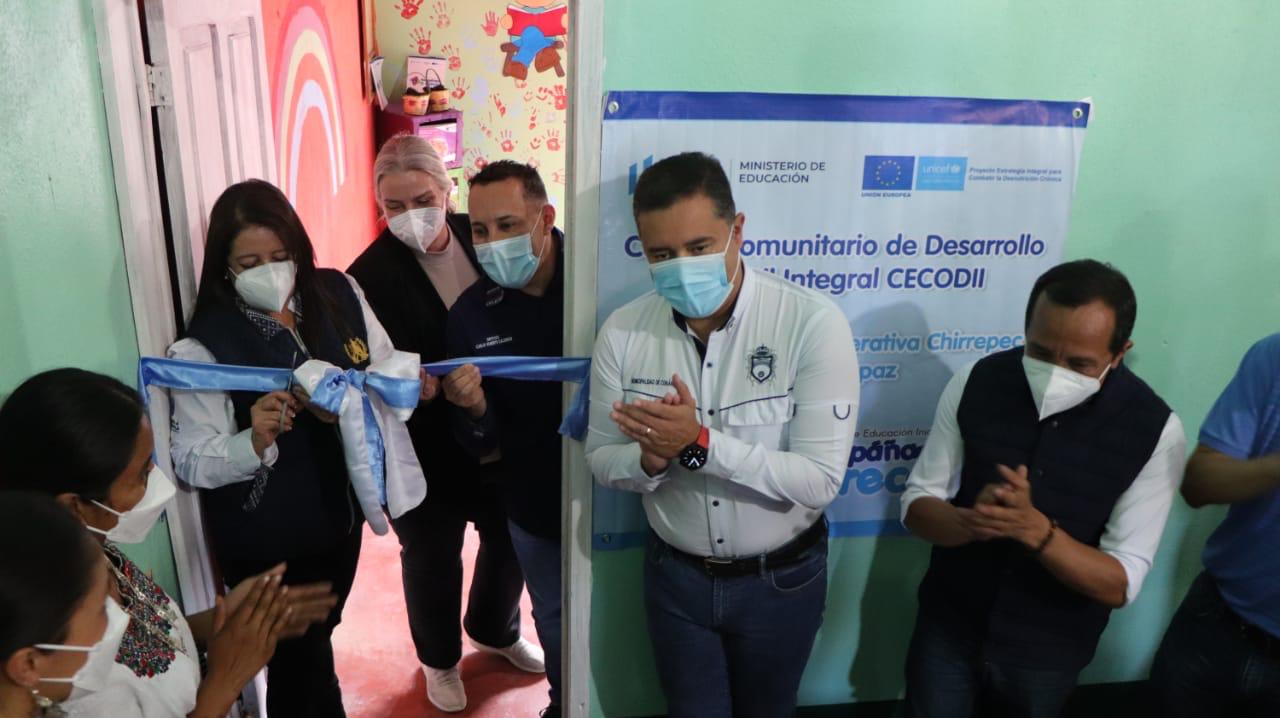 La Ministra de Educación, Claudia Ruiz de Estrada, acompañada de la representante Adjunta de UNICEF, Lone Hvass inauguró Centros Comunitarios de Desarrollo Infantil Integral (CECODII), del Programa “Acompáñame A Crecer” en las comunidades de Chirrepec, Caserío Sacanilla y Barrio Chirretzaaj del municipio de Cobán, Alta Verapaz, para beneficiar a niños de 0 a 4 años de edad con apoyo de la Unión Europea y el Fondo de las naciones Unidas para la Infancia (UNICEF)