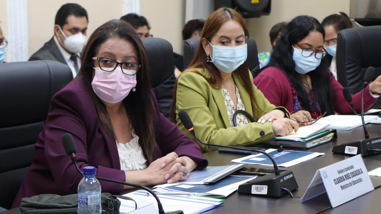 La Ministra de Educación, Claudia Ruíz de Estrada acompañada de las Viceministras María Balcarcel y Carmelina Spantzay, así como con su equipo técnico atendieron la citación de la Comisión de Educación, Ciencia y Tecnología del Congreso de la República para presentar avances en los programas que ejecuta la cartera para atender a los niños y adolescentes del sector oficial.