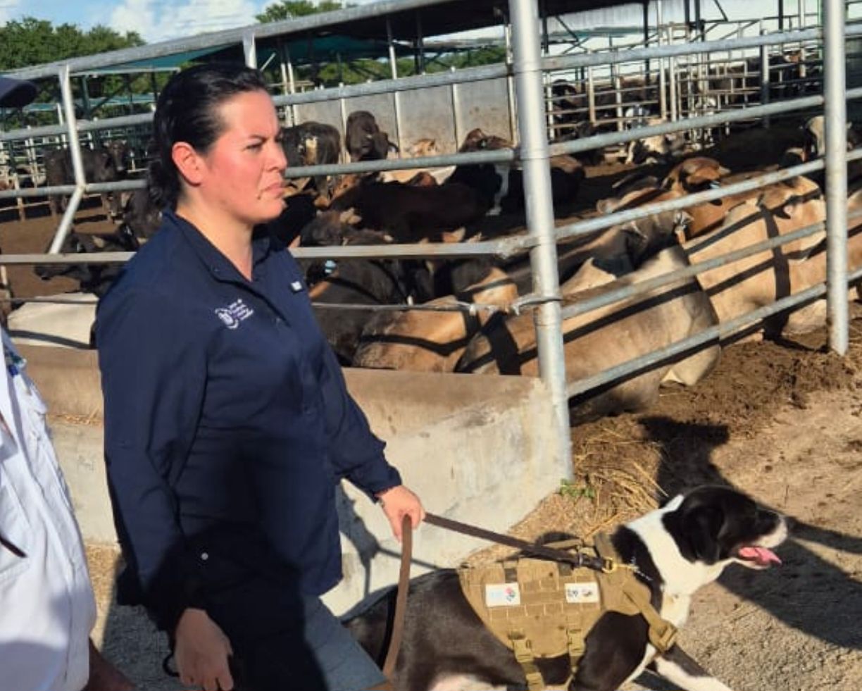 Se conoció cómo funciona un binomio canino entrenado específicamente para la detección del Gusano Barrenador. Gracias a este, se logra una identificación oportuna y ello contribuye a que el ganado cumpla con los requerimientos sanitarios exigidos por los países importadores.