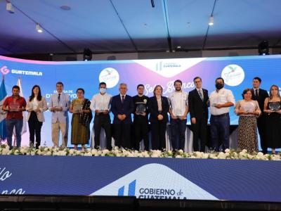 Durante la entrega de distintivos, el ministro de Economía, estuvo acompañado del Ministro de Agricultura, Ganadería y Alimentación, José Ángel López; el viceministro de la Mipyme, Fernando Escalante; y la viceministra de Relaciones Exteriores, Shirley Aguilar.