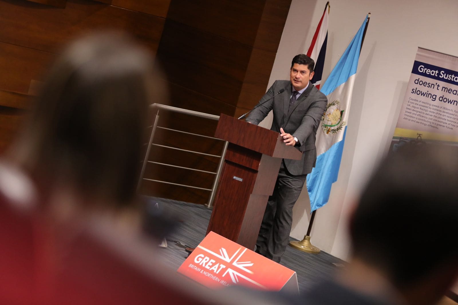 El ministro de Economía, Dr. Janio Rosales, participó este jueves en el panel “Great Markets = Great Partnerships UK & GT Doing Business”, organizado por la embajada del Reino Unido en Guatemala, con motivo de la visita al país del Comisionado Comercial Adjunto para LATAM y el Caribe, Spencer Mahony.